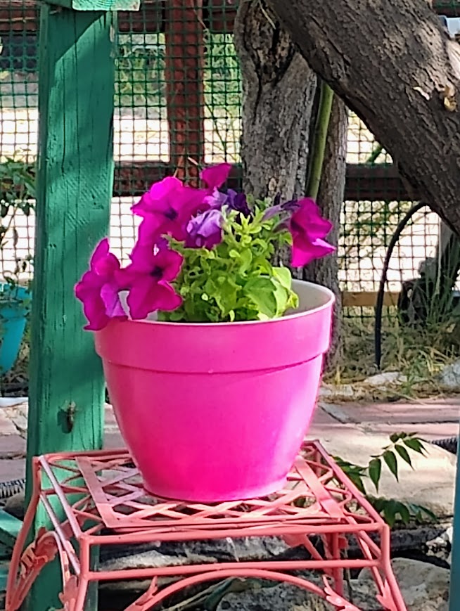 I’m gazing at the petunia that I planted from seed that now is now bursting with deep fuchsia blooms. I beam like the proud plant parent that I am. I did that. I tended to her, I told her how proud I was of her and she’s blossomed. Across the patio is another shy, but beautiful petunia, blazing in all of her glory with her single red bloom. I literally told her one day that she was falling behind and that she could do better….and the next day she bloomed!